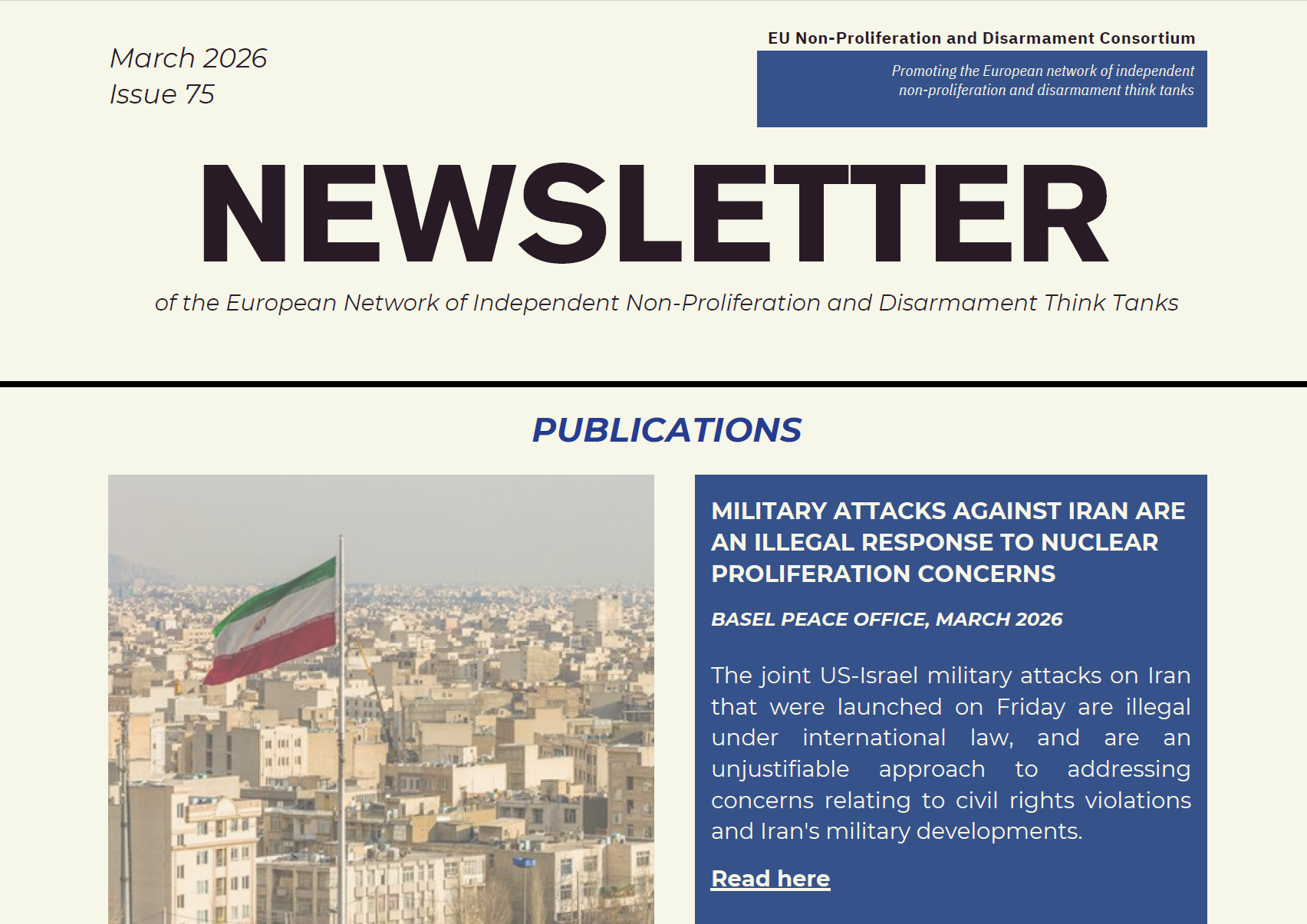 The main aim of the network of independent non-proliferation and disarmament think tanks is to encourage discussion of measures to combat the proliferation of weapons of mass destruction and their delivery systems within civil society.